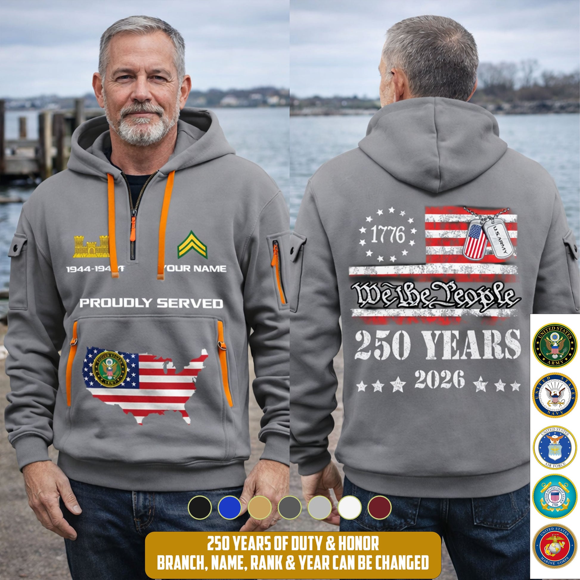 Army Branch - Personalized 250th America Anniversary Zip Hoodie Multicolor – Custom Military Branch, We The People, Independence Day - 1769212801